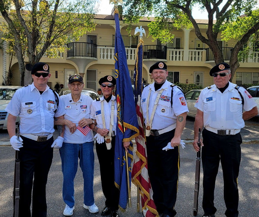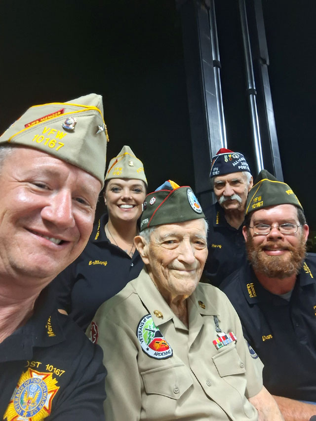 ![]() ![]() ![]() ![]() ![]() Fred Faulkner, 99-year old Battle of the Buldge Veteran, getting ready to hear his work performed by the Florida Orchestra at Julian B. Lane River Front Park. They played his original work Ardennes March. It was wonderful. ![]() Kids Fishing Tournament March 2, 2024 ![]() ![]() ![]() ![]() Veterans Day November 11, 2023 WWII Vet Fred Faulkner and VFW 10167 Commander Bob George ![]() ![]() Connecting with a "3-War" Marine Veteran at the On Top of the World St. Patrick's Day Parade. O'Neill was in WWII, Korea & Viet Nam. March 4, 2023 ![]() Scouts of America, Troop 834 Expanding our Purple Heart Project |