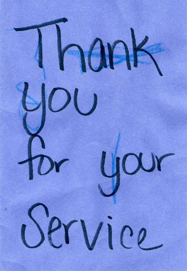 The little girl pictured below handed out these handmade cards to many of the Veterans!